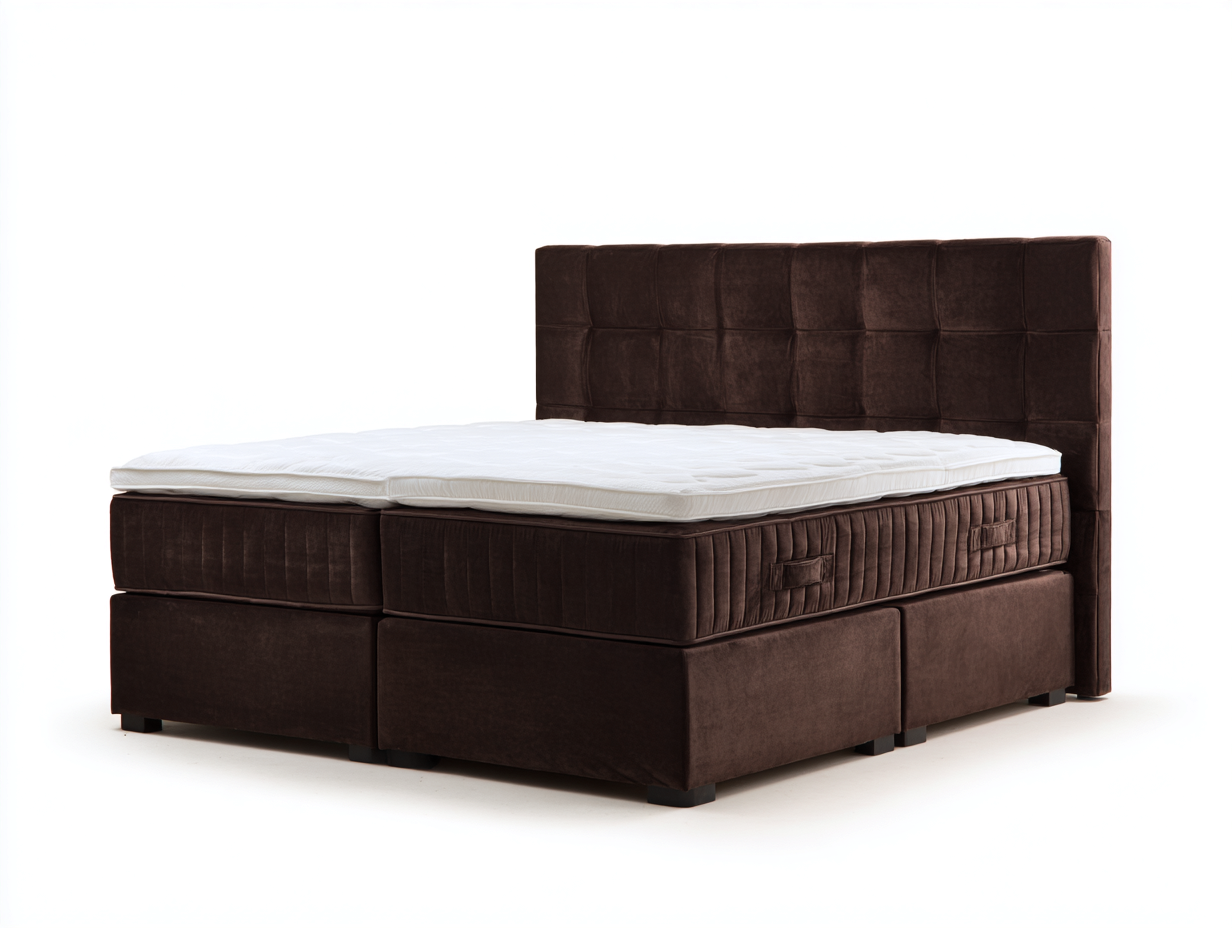 Lit double au design contemporain avec tête de lit rembourrée.