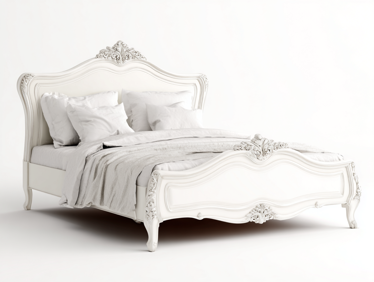 Lit double au design sculpté, idéal pour une chambre au style classique.